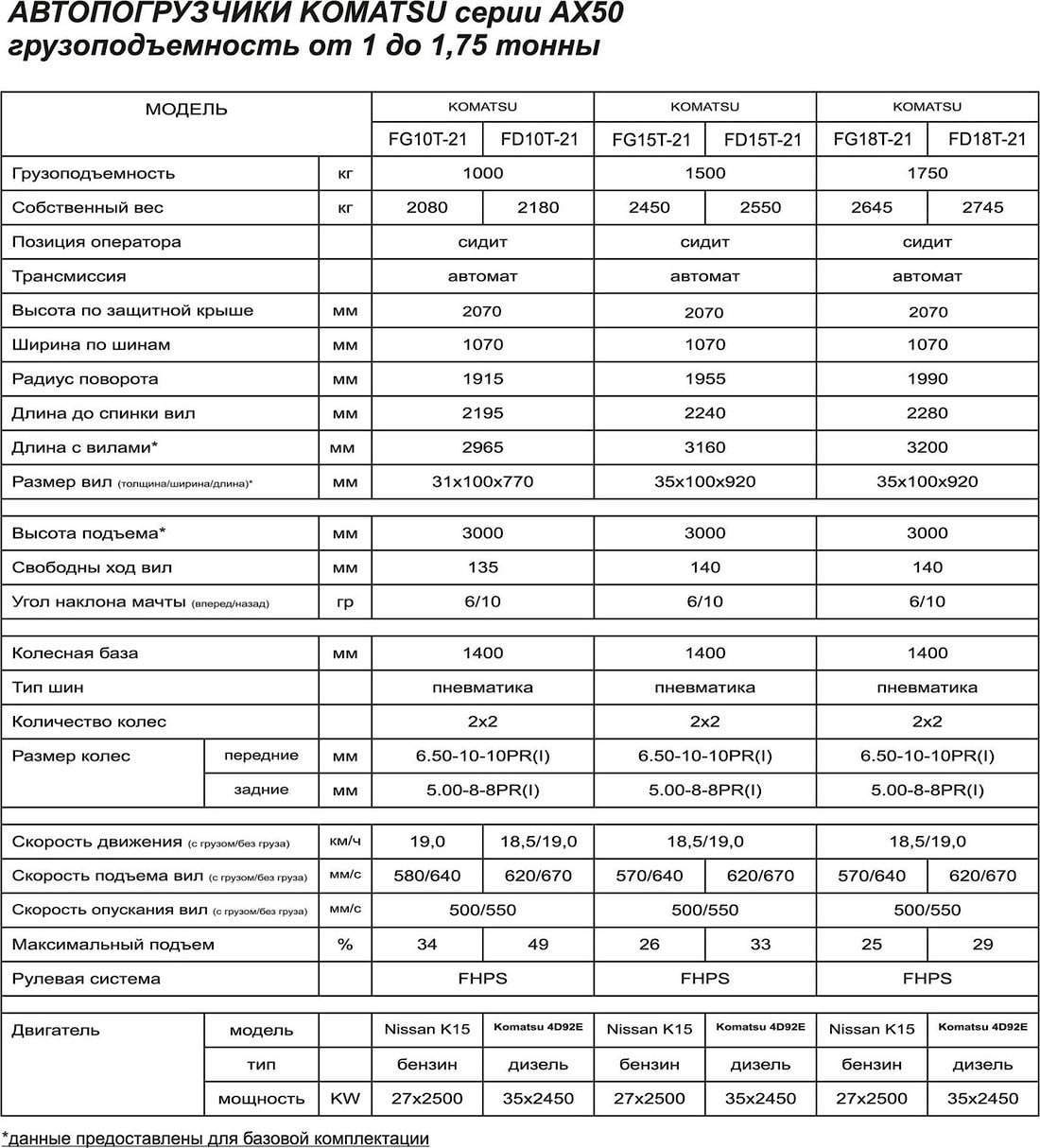 Вилочные автопогрузчики KOMATSU серии AX50, грузоподъемность 1-1,75 тонн