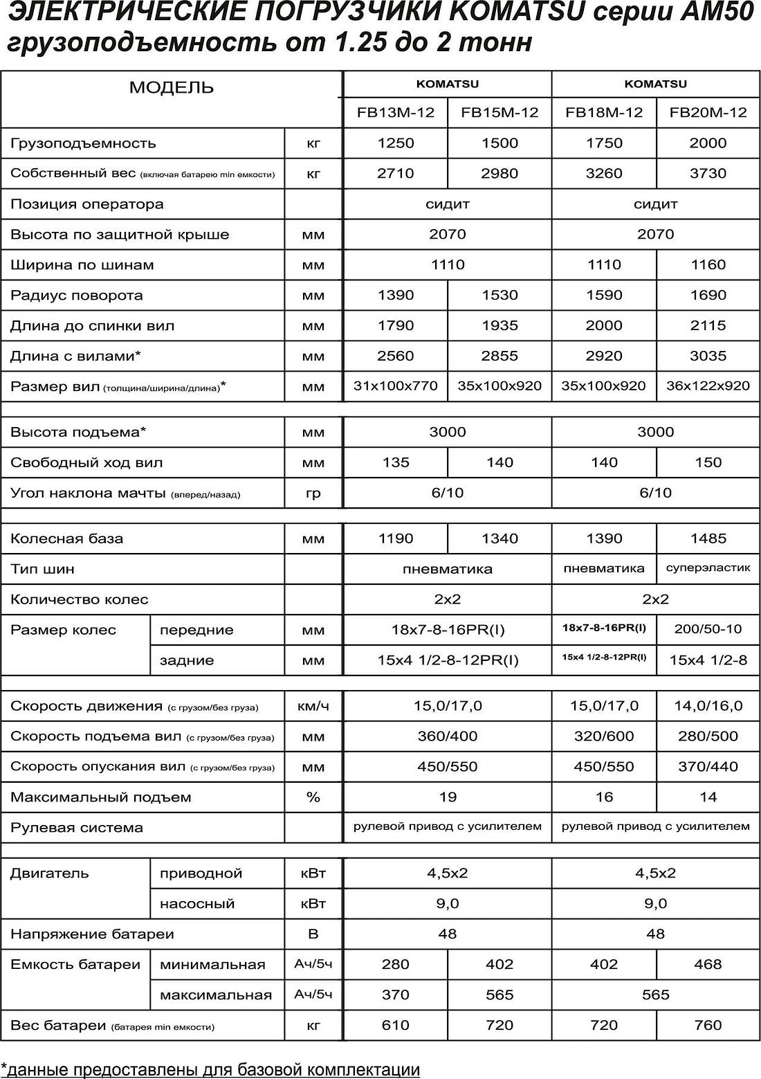 Вилочные электропогрузчики KOMATSU серии АМ50, грузоподъемность 1,25-2 тонн