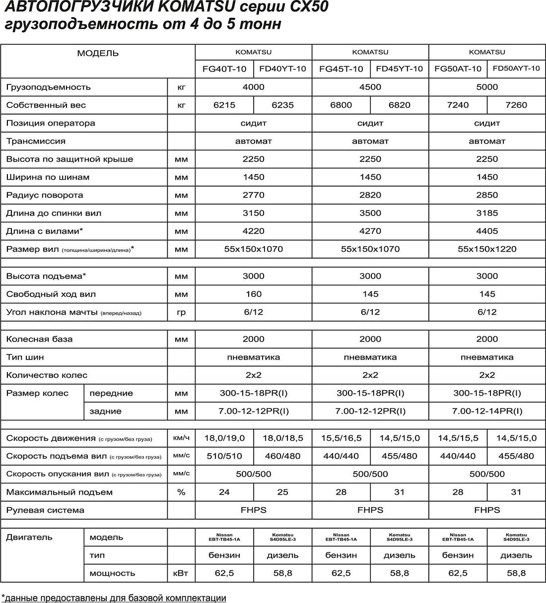 Вилочные автопогрузчики KOMATSU серии СХ50, грузоподъемность 4-5 тонн